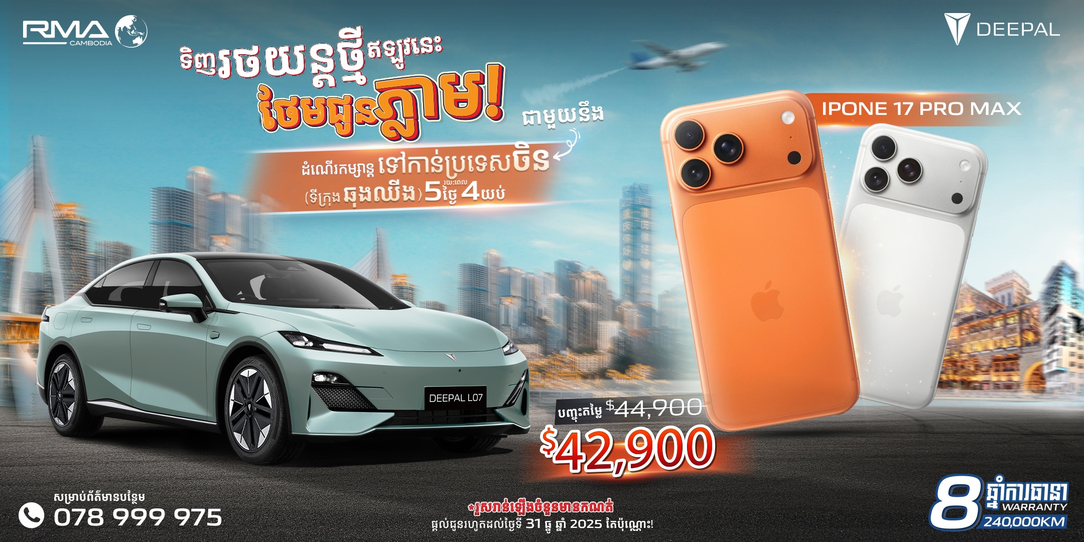 សូមស្វាគមន៍មកកាន់កម្មវិធី “Year End Selling” ដ៏ធំសម្បើមពី Changan និង Deepal! ឆ្នាំ ២០២៥ ជិតបញ្ចប់ហើយ នេះគឺជាឱកាសមាសដើម្បីក្លាយជាម្ចាស់រថយន្តទំនើបជាមួយនឹងការបញ្ចុះតម្លៃរាប់ពាន់ដុល្លារ!