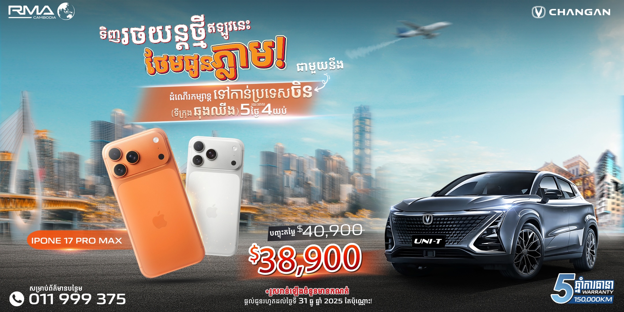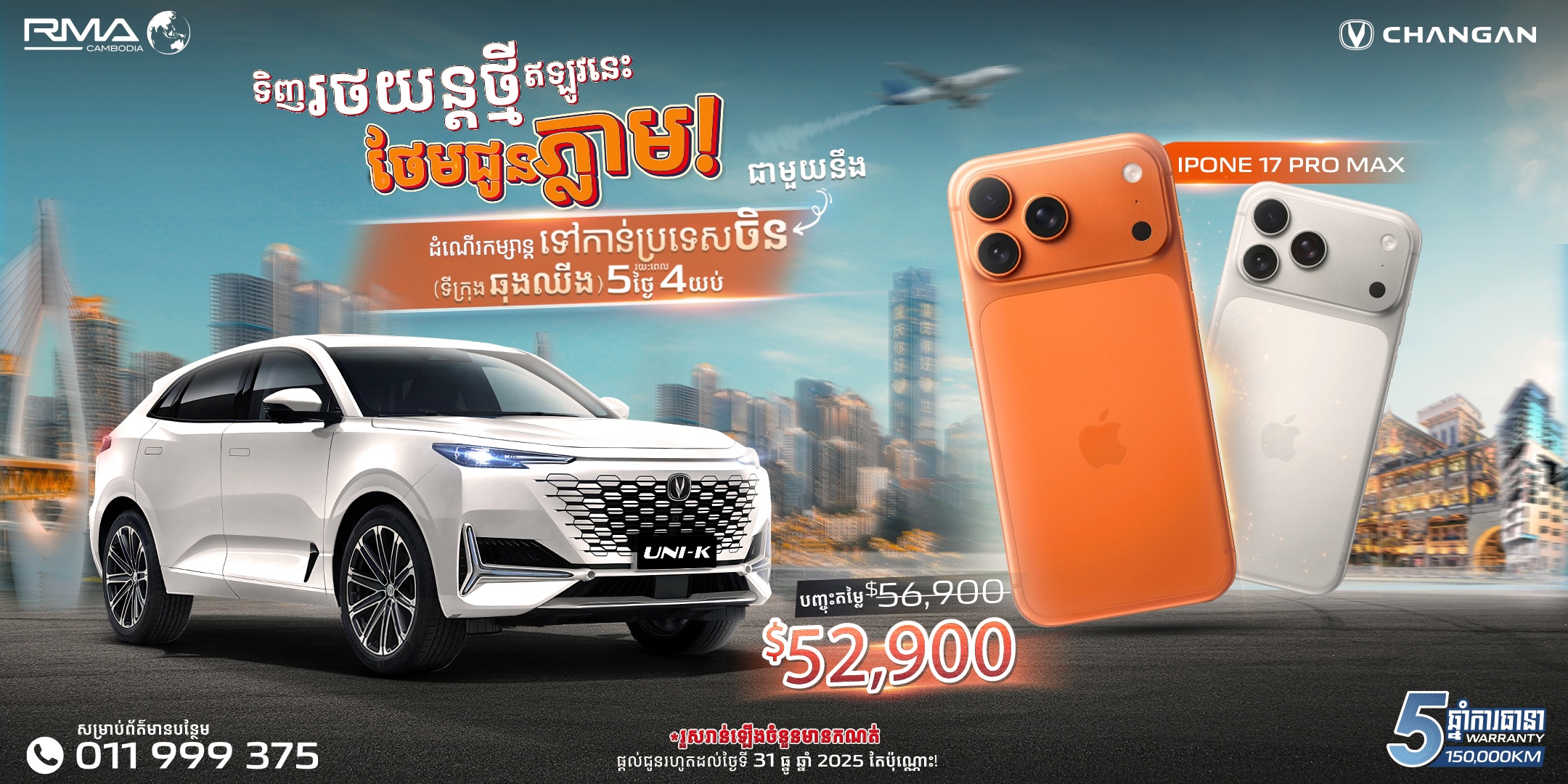 អស់រយៈពេលជាច្រើនឆ្នាំមកហើយដែល Changan បានបោះជំហានយ៉ាងរឹងមាំនៅក្នុងទីផ្សារកម្ពុជា ក្រោមការនាំចូលផ្ដាច់មុខដោយ ក្រុមហ៊ុន អ អឹម អេ (ខេមបូឌា)។ វត្តមានរបស់ Changan មិនត្រឹមតែបាននាំមកនូវជម្រើសរថយន្តដ៏សម្បូរបែបប៉ុណ្ណោះទេ ប៉ុន្តែក៏បានកសាងកេរ្តិ៍ឈ្មោះដ៏រឹងមាំមួយក្នុងការផ្ដល់ជូននូវរថយន្តដែលមានគុណភាពខ្ពស់ បច្ចេកវិទ្យាទំនើប និងតម្លៃសមរម្យ។ អ្វីដែលកាន់តែពិសេសនោះ គឺឥឡូវនេះ Changan Cambodia កំពុងតែផ្ដល់ជូននូវ Promotion ពិសេសមិនធ្លាប់មានពីមុនមក សម្រាប់កម្មវិធី Year End Selling របស់ខ្លួន ដែលជាឱកាសដ៏ល្អបំផុតប្រចាំឆ្នាំនេះ។